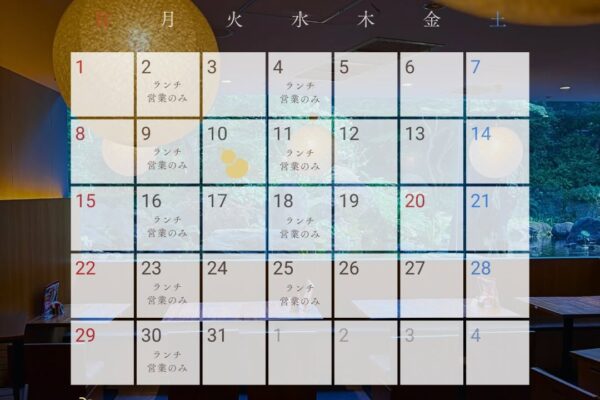 大きなガラス窓から広がる庭園の景色は、和の趣を感じさせます。時間帯によっては滝が流れ、非日常を感じられる特別な空間に。開放感と静けさが調和する店内で、心安らぐひとときをお過ごしいただけます。