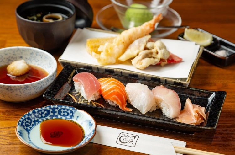 日本の味を気軽に楽しめる「和体験セット」。寿司と天ぷら、日本酒と天ぷらの二つの組み合わせで、日本を代表する味覚を一度に堪能できます。観光でのお食事はもちろん、仕事帰りの一杯にも最適。幅広いシーンで喜ばれる、当店自慢の人気メニューです。