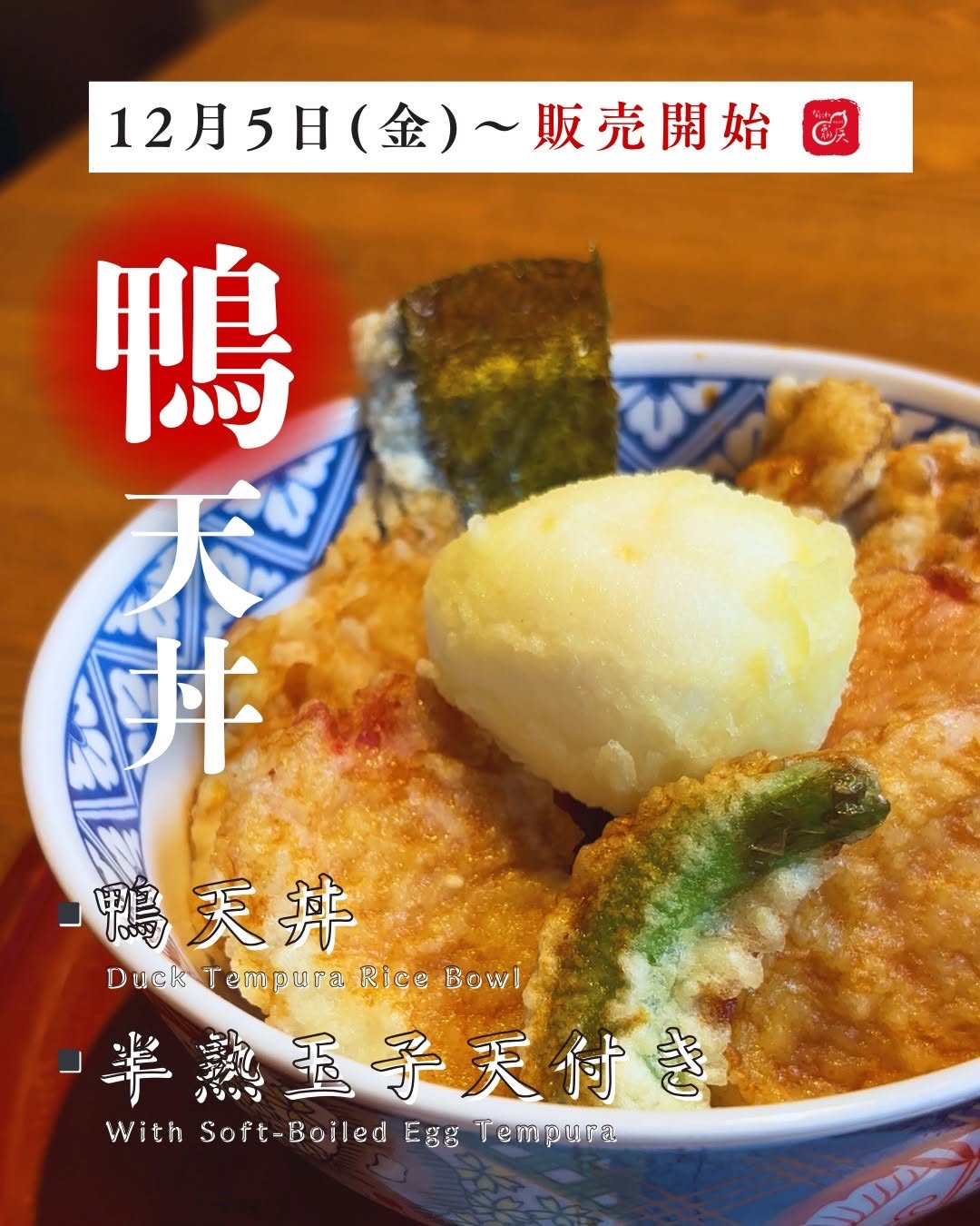 □ Duck Tempura Rice Bowl with Soft-Boiled Egg (¥2,350)